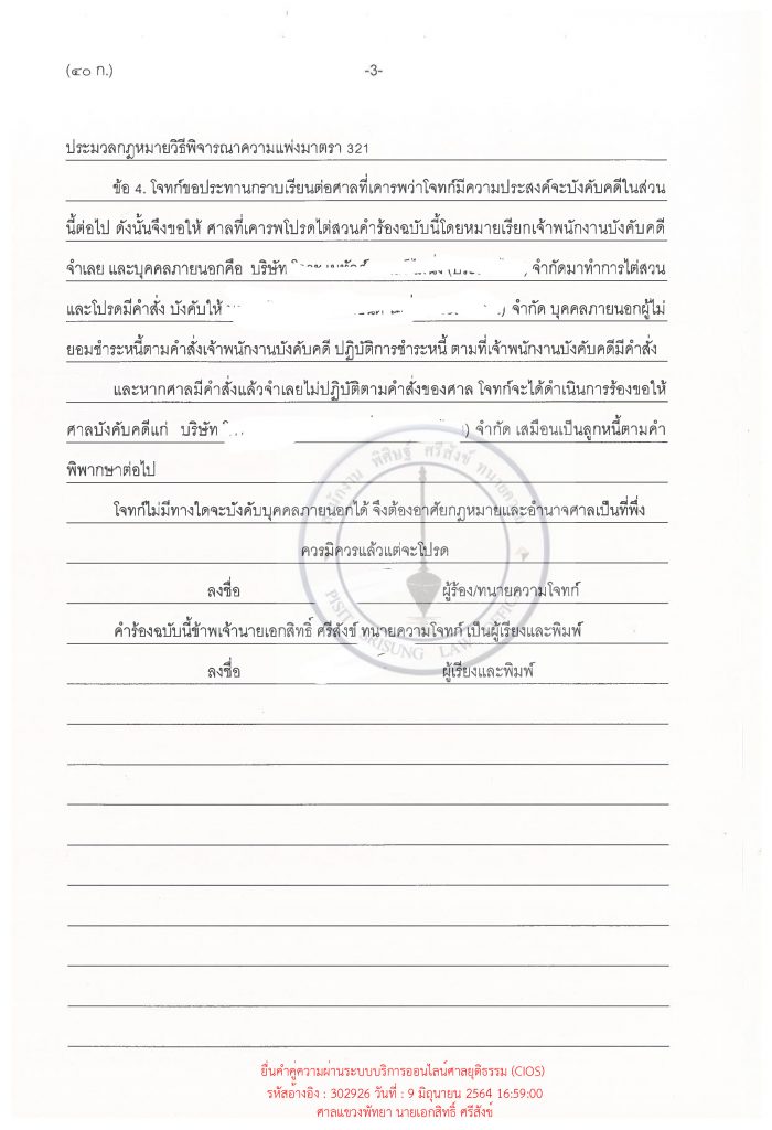 ตัวอย่างคำร้อง ตาม ปวิพ ม.321 กรณีบริษัทนายจ้างไม่ยอมส่งเงินตามคำสั่งอายัด 3 10 มิ.ย. Express your opinion about this article comments
