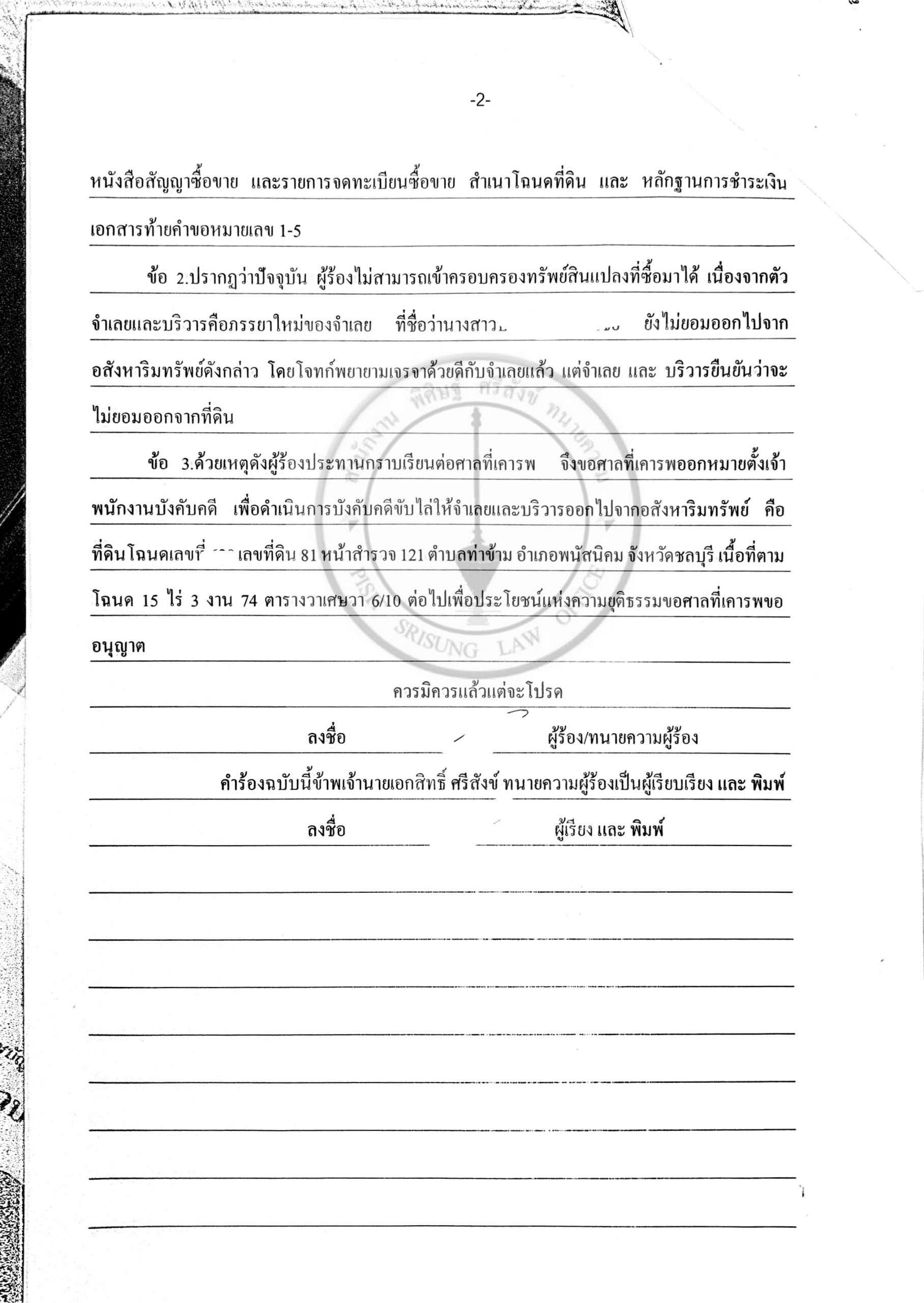 ขอหมายตั้งเจา้พนักงานบังคับคดี ในฐานะผู้ซื้อทรัพย์ 2 04 มิ.ย. Express your opinion about this article comments