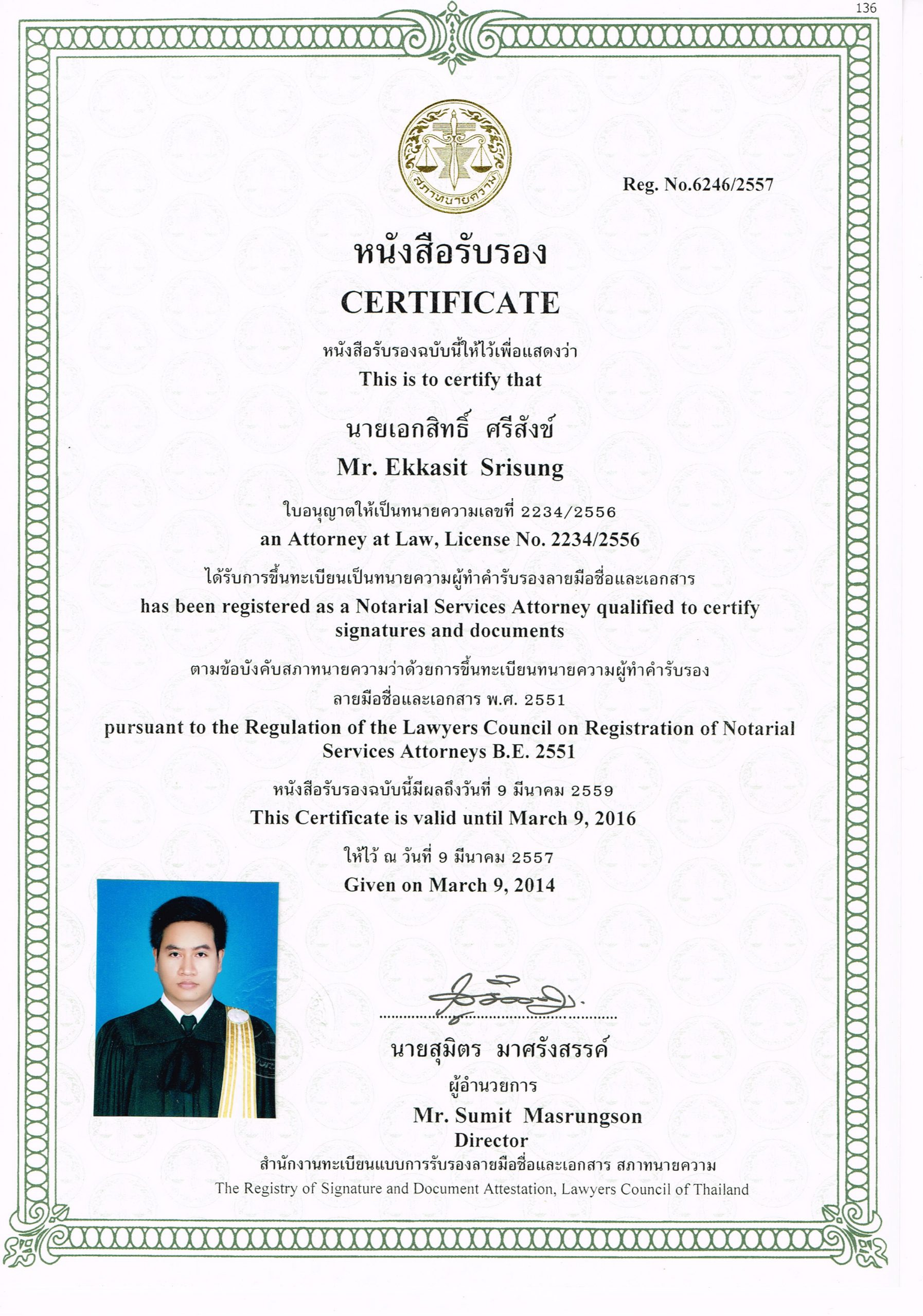 หนังสือรับรองทนายความผู้ทำคำรับรองลายมือชื่อและเอกสาร Notary Public Attoney 29 ธ.ค. Express your opinion about this article comments